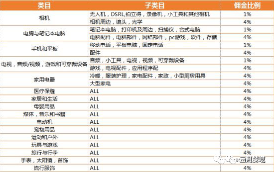 等情况,佣金会返还。具体类目产品的佣金,参考下表: