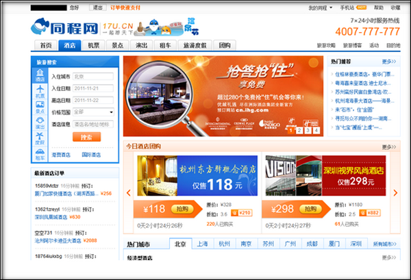 3 登录成功后,将跳转至同程网的酒店预订页面,搜索想要预订的酒店信息。
