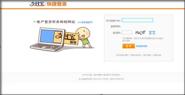 2 跳转到支付宝快捷登录页面,输入支付宝账户名、登录密码等相关信息。