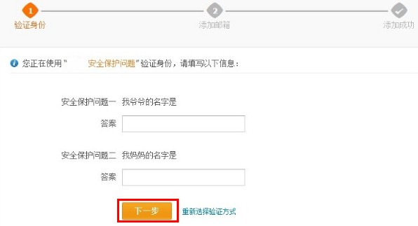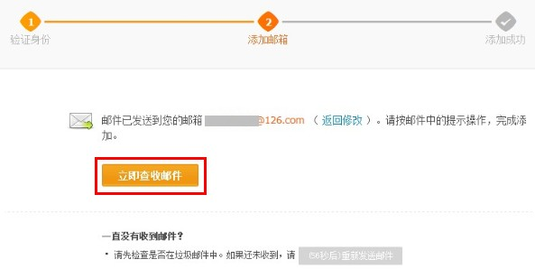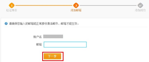通过【安全保护问题】添加邮箱登录名的流程 大文 五月 13, 2016 账户设置 0 条评论 1373 围观 1 登录支付宝账户( www.alipay.com), 点击【账户设置】—【基本信息】—【立即添加】 2 选择【通过安全保护问题】—【立即添加】 3 回答安全保护问题答案,点击【下一步】 4 输入要添加的邮箱 温馨提示: 若提示邮箱已经被占用,是由于该邮箱已注册了阿里巴巴集团下的网站账户,如淘宝、支付宝、阿里巴巴网站等,建议更换新邮箱即可 5 点击【立即查收邮件】,到邮箱查收邮件并确认;若要修改邮箱地址,请点击【返回修改】,重新填写新的邮箱 6 查收对应邮件,点击【点此立即激活】即可将Email地址同时作为支付宝账户登录名。可以使用手机号码或邮箱来登录支付宝账户 温馨提示: 如果没有收到邮件、邮箱不对或收到邮件链接无效的,可以登录服务大厅,点击【自助服务】—【修改邮箱名】,按提示修改接收邮件的邮箱