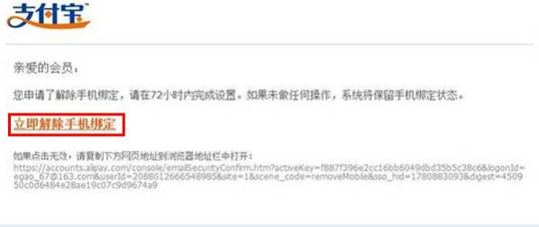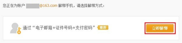 通过【电子邮箱+证件号码+支付密码】解绑手机号码的流程 大文 五月 14, 2016 账户设置 0 条评论 1704 围观 使用前提: 适用于原手机号码无法接收短信,使用邮箱登录的用户,电子邮箱可接收邮件,记得账户注册或认证证件号码和支付密码 1 登录支付宝账户( www.alipay.com), 点击【账户设置】—【基本信息】 —【手机】—【解绑】 2 选择【通过电子邮箱+证件号码+支付密码】,点击【立即解绑】 3 填写证件号码和支付密码,点击【下一步】 温馨提示: 未认证用户填写注册的证件号码,实名认证账户填写认证的证件号码 4 支付宝发送邮件到账户绑定邮箱,点击【立即查收邮件】 5 打开对应邮件,点击【立即解绑手机绑定】 6 邮箱验证成功,点击【继续解绑手机】,手机解绑成功