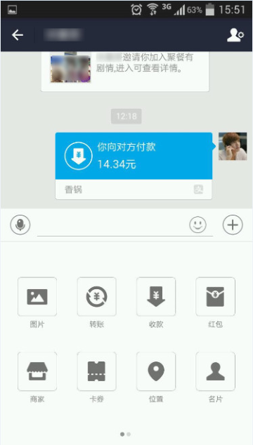11 输入支付密码完成付款,付款后自动发送一条消息到对话页面