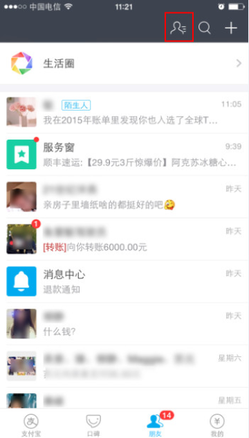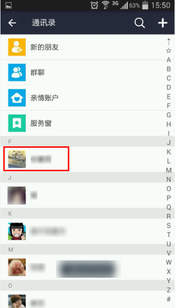 3 在朋友列表中找到要收款的人,点击打开对话页