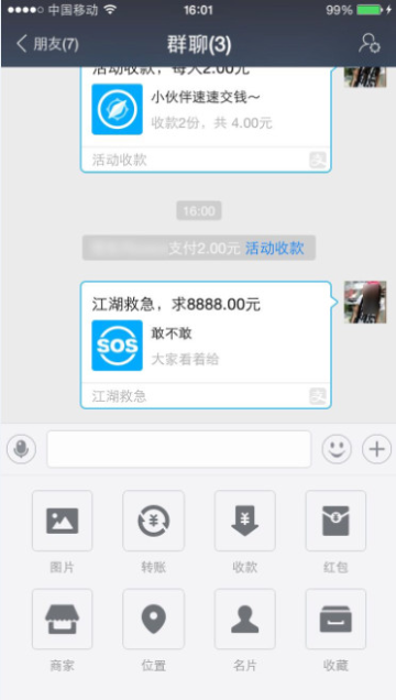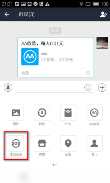2 找到要收款的群,在群组对话页点击【江湖救急】
