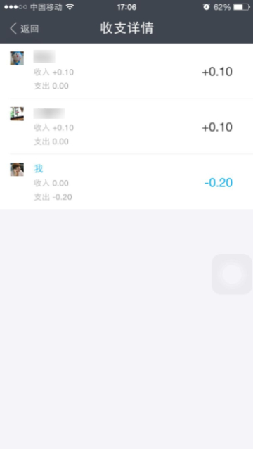 3 点击付款页面右上角【收支详情】,显示当前群转账成员(显示“我”而非姓名)总计金额,并按照金额倒序排列