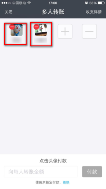 2 在群转账页面,点击朋友头像即可选人付款,支持多选;