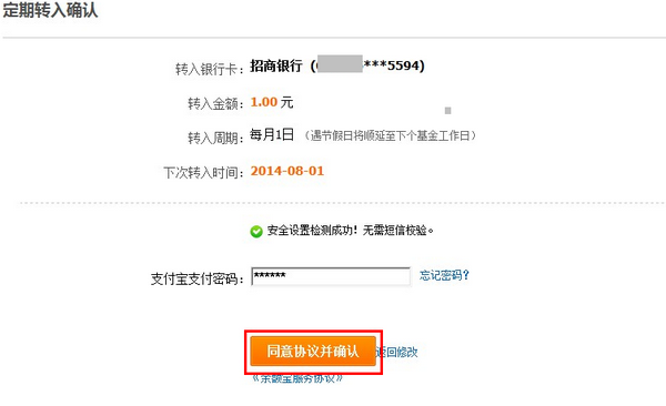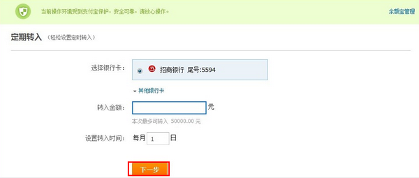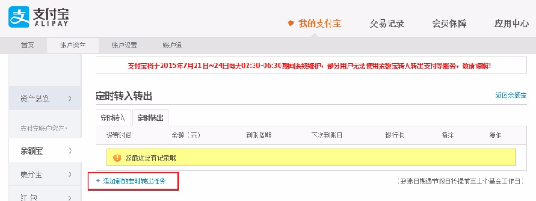 电脑端如何设置余额宝定时转入? 大文 五月 22, 2016 付款方式 0 条评论 1575 围观 1 登录支付宝账户( www.alipay.com), 点击余额宝下方的【管理】 2 点击银行卡定时转入下的【设置】(定时转入和自动转入合称为自动赚) 3 点击【添加新的定时转入任务】 4 选择银行卡,设置转入金额、转入时间,点击【下一步】 5 输入支付密码,点击【同意协议并确认】即可