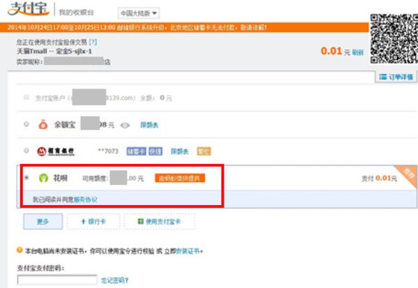 电脑端如何使用蚂蚁花呗购买商品? 大文 五月 22, 2016 付款方式 0 条评论 2051 围观 1 在收银台付款时,选择蚂蚁花呗支付, 已签约蚂蚁花呗服务的界面如下: 2 输入支付密码,付款成功 3 未签约蚂蚁花呗服务的收银台页面如下, 系统会自动匹配账户是否符合开通条件,人工无法调整。若未显示入口,则代表暂不支持