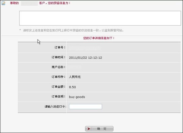 4 确认支付信息无误,输入动态口令,点击【确定】