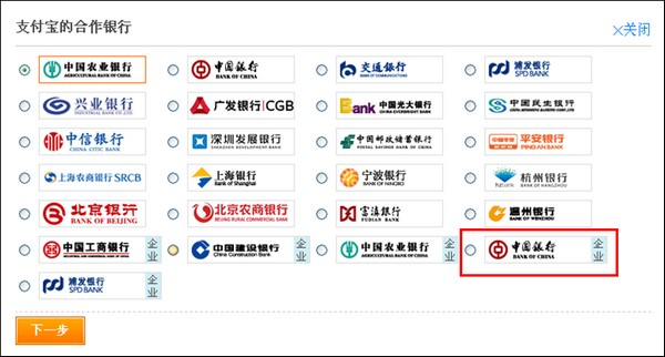 1 订单付款,选择【储蓄卡】—【网银】—【中国银行企业版】—点击【下一步】