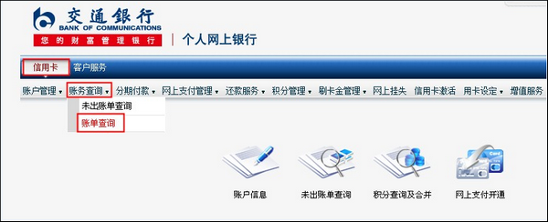 交行信用卡如何查询交易明细? 大文 五月 22, 2016 付款方式 0 条评论 1184 围观 1 登录交通银行(信用卡):creditcard.bankcomm.com, 点击【信用卡】—【账务查询】—【账单查询】或者【未出账单查询】