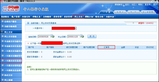 登录【个人银行专业版】—【网上支付】一【一卡通支付交易查询】—选择时间段—点击【查询】