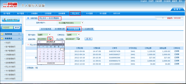 招商信用卡如何查询网上支付交易明细? 大文 五月 23, 2016 付款方式 0 条评论 1225 围观 1 登录招商银行:http://www.cmbchina.com, 点击【个人银行大众版】—【信用卡】—【网上支付】—【支付交易查询】 2 点击【账户管理】—选择【账户查询】、【已出账单查询】、【未出账单查询】
