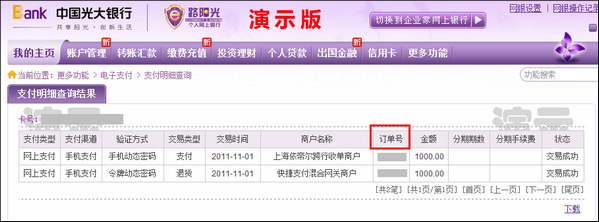 光大如何查询网上支付订单号? 大文 五月 23, 2016 付款方式 0 条评论 1465 围观 1 登录光大银行:http://www.cebbank.com, 点击【个人用户登录】 2 点击【更多功能】—【电子支付】—【支付明细查询】—【按账号查询】,选择查询时间段
