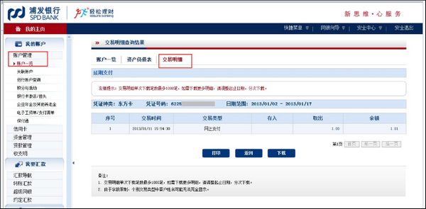 浦发银行储蓄卡如何查询交易明细? 大文 五月 23, 2016 付款方式 0 条评论 1656 围观 1 登录浦发银行:http://www.spdb.com.cn/, 点击【账户管理】—【账户一览】—【交易明细】查询 2 交易明细页面