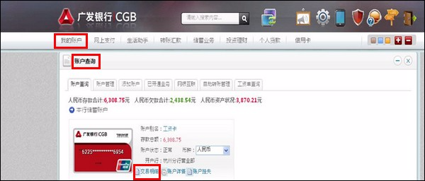 广发银行储蓄卡如何查询交易明细? 大文 五月 23, 2016 付款方式 0 条评论 1454 围观 1 登录广发银行:www.cgbchina.com.cn, 点击【个人银行】—【账户查询】—【交易明细】
