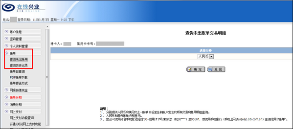 兴业信用卡如何查询交易明细? 大文 五月 23, 2016 付款方式 0 条评论 1301 围观 1 登录兴业银行:http://www.cib.com.cn, 选择【信用卡登录】—点击【账单】—【未出账单】或【历史记录】查询
