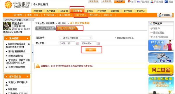 宁波银行如何查询交易明细? 大文 五月 23, 2016 付款方式 0 条评论 2361 围观 1 通过宁波银行专业版或快速通道—【支付缴费】—【网上支付】—【网上支付交易查询】,选择付款账号、具体日期,【确定】