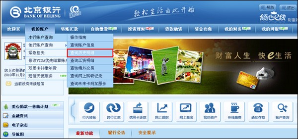 北京银行如何查询交易明细? 大文 五月 24, 2016 付款方式 0 条评论 1446 围观 1 登录北京银行:http://www.bankofbeijing.com.cn/, 点击【我的账户】—【本行账户查询】—【查询网上购物记录】 2 订单号和明细页面 3 点击【我的账户】—【本行账户查询】—【查询历史明细】可查询之前的明细 4 历史明细页面