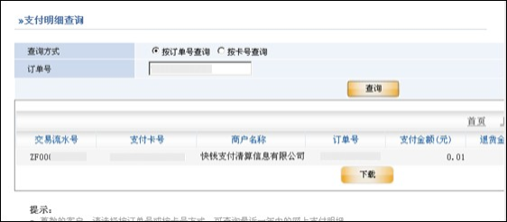 1 登录个人网银专业版后,点击【网上支付】—【支付明细查询】,可使用订单号或者卡号进行查询