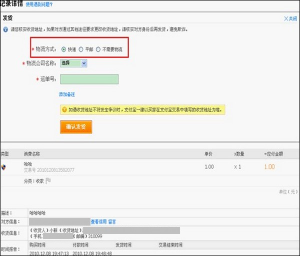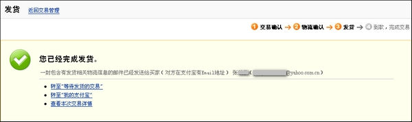 卖家如何操作发货 大文 五月 24, 2016 交易规则 0 条评论 1573 围观 1 登录支付宝账户( www.alipay.com), 在交易记录里找到要进行发货的交易后,点击【发货】 2 选择实际发货的公司并输入对应的发货单号进行确认发货 3 填写信息点击【确认】后,页面会显示您的发货成功,并发邮件通知买家,这时交易状态将改变为【卖家已发货,等待买家确认】,只需要等待买家收货后确认交易