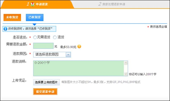 买家已收到货,不需要退货流程 大文 五月 25, 2016 交易规则 0 条评论 2085 围观 温馨提示: 1) 无论是买家还是卖家,在交易创建后请积极关注交易超时,以免交易超时给自己带来不必要的损失 2) 有些时候卖家发货数量少、产品有点问题但不影响使用等问题,双方协商不需要退货,愿意给买家退部分钱。这种情况就是买家已收到货,退款不需要退货的流程 1 登录支付宝账户( www.alipay.com), 在【交易记录】中找到此笔交易,在【操作】下方选择【退款】按钮 2 或者 登录淘宝网(www.taobao.com), 【我的淘宝】—【已买到的宝贝】中,找到需要退款的交易,点击【申请退款】 3 一般买家承担运费的,如交易创建时买家选择快递,在卖家发货后,系统默认10天收货自动付款,请注意时间 4 点击【申请退款】后选择(已收到货,但要求退款) 温馨提示: 您没有收到货请不要选择此项,以免被骗 5 选择【无需退货】,填写需要退款的金额,然后填写退款说明,输入您的支付宝账户支付密码,【提交退款申请】 温馨提示: 当卖家同意该退款申请后,您愿意支付的金额将立即到达卖家账户,退款金额返回您的支付宝账户,交易结束 6 退款状态:【退款协议等待卖家确认】中 7 卖家有15天的时间来处理退款协议,如果超时,会退款给买家 8 卖家可查看退款协议,现在退款状态:买家已收到货,不用退货。这种情况下,卖家如同意退款协议,退款申请马上生效,相关款项就退还给买家。如果退款状态:买家已收到货,需要退货这种情况下,卖家同意退款协议后,买家需要走退货的流程 9 卖家这个时候有两个选择,一个是同意买家的退款申请协议,另一个是拒绝买家的退款申请协议 10 当卖家同意的时候还会有一个提示“确定退款后,相关货款将立即退还给买家”请慎重操作 11 卖家同意买家的退款申请协议后退款成功