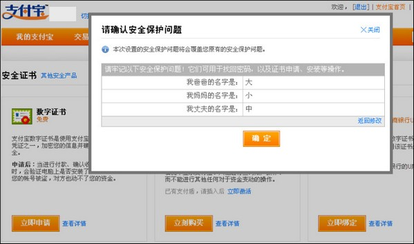 5 确认设置好的安全保护问题;