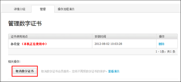 2 点击【取消数字证书】
