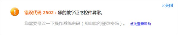 数字证书控件异常时提示修改操作系统密码:是因为您的操作系统因未设置系统密码导致数字证书服务未初始化