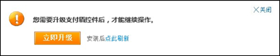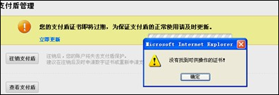 如何更新支付盾 大文 五月 26, 2016 安全中心 0 条评论 1604 围观 1 支付盾需要一年更新一次,系统会在过期前30天在页面通知更新支付盾,超过更新时间也会在收银台和支付宝操作页面提示更新 2 点击“更新支付盾”进行实时检测,判断当前账户是否是支付盾用户+已绑定的Ukey中证书已过期或即将过期(提前30天) 3 不符合上述条件,页面提示 4 更新失败,页面提示 5 更新成功 6 已安装支付盾旧控件用户,需要升级支付盾控件的提示