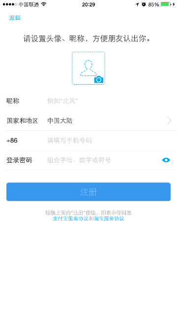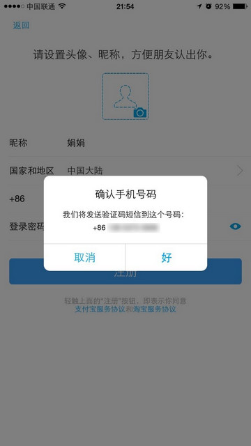 手机登录支付宝,如何注册支付宝账户(大陆) 大文 五月 27, 2016 无线支付宝 0 条评论 1570 围观 1 用手机登录支付宝,点击【新用户?立即注册】 2 设置账户头像、昵称,输入手机号码和登录密码,点击【注册】 【国家和地区】选择【中国大陆】 点击【密码框】旁的眼睛可查看明文密码 3 确认手机号码,系统发送验证码短信 4 通过验证,设置支付密码 5 注册成功 6 如果系统判断存在操作异常,在注册中需要通过安全验证 7 如果注册的账户密码和已有账户密码一致,可直接登录账户
