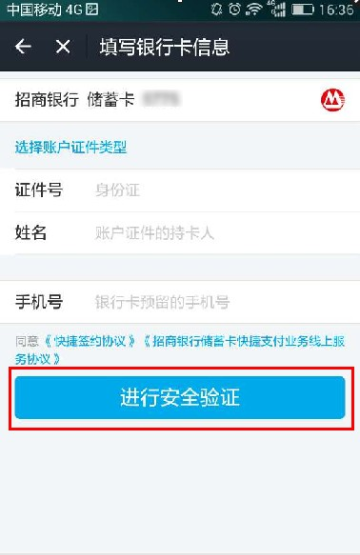 6 填写银行卡信息,点击【进行安全验证】