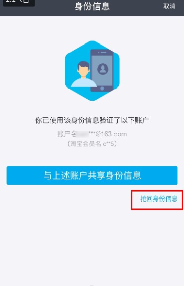 7 确认已认证账户是否本人,如非本人,点击【抢回身份信息】