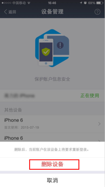 通过手机支付宝,进行设备管理 大文 五月 27, 2016 无线支付宝 0 条评论 1301 围观 1 手机登录支付宝, 点击右下角【我的】 2 点击【账户信息栏】 3 点击【设置】 4 点击【安全设置】 5 点击【安全中心】 6 点击【设备管理】 7 点击需要删除的设备 8 点击【删除设备】,即可删除对应的设备