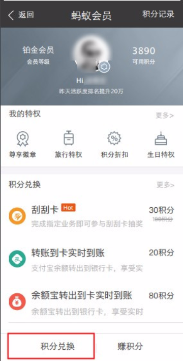 手机登录支付宝,兑换积分特权流程 大文 五月 27, 2016 无线支付宝 0 条评论 1356 围观 打开支付宝APP,点击【我的】,点击上方【会员】 点击左下角【积分兑换】 选择想要兑换的权益 点击【确认兑换】 兑换成功 1 2 3 4 5 温馨提示:兑换成功后会告知如何查看权益,因权益类型多样,不提供单独的查看入口。假如兑换的是最常见的卡券类权益,可以在【卡券(包)】查看