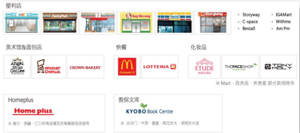 4、在GS超市或Home plus365使用现金充值,无手续费