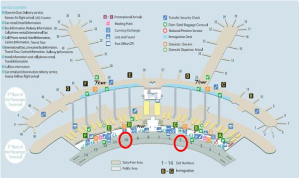 机场 | 仁川机场到达厅,GATE 5,GATE 10 观光Information Desk柜台 | ||