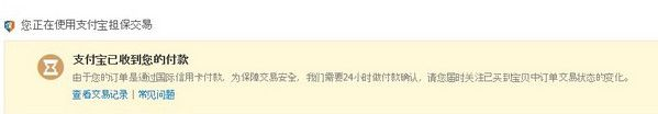 因为您使用国际信用卡付款,为了保障交易安全,我们需要24小时做订单确认,建议您关注订单状态的更新。您无需再次支付,也不要点击卖家给您发送的链接再次付款。
