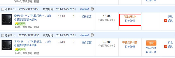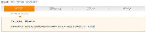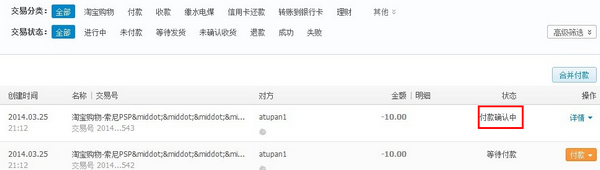 2 在淘宝已买到的宝贝中显示交易状态为【付款确认中】,此时订单买卖双方都不能做其他任何操作。