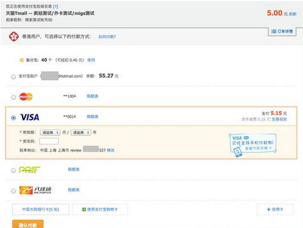 4 若在淘宝填写了收货地址之后,会在卡信息填写页面看到“将收货地址作为账单地址”选项; 若收货地址与其账单地址相符,用户可直接使用,否则可以自行“填写新地址”