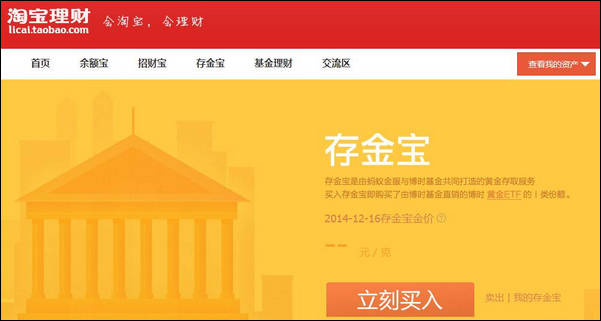如何查看已经购买资产? 大文 六月 3, 2016 应用中心 0 条评论 1262 围观 1 打开淘宝理财:licai.taobao.com,进入【存金宝】页面 2 点击【我的存金宝】 3 即可查看详细资产