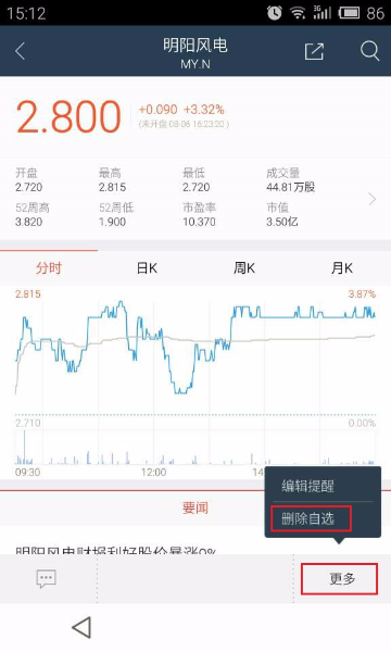 删除自选股的流程 大文 六月 3, 2016 应用中心 0 条评论 1435 围观 1 登录蚂蚁聚宝客户端, 在个股详情页右下方点击【更多】,选择【删除自选】 2 也可以在搜索页面点击股票后的对号,成功后显示“+”号