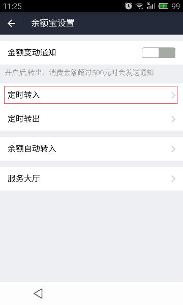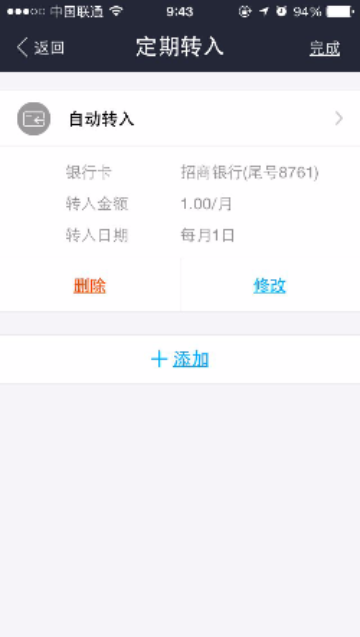 通过手机支付宝,管理余额宝定时转入的流程 大文 六月 4, 2016 无线支付宝 0 条评论 1977 围观 1 手机登录支付宝, 点击【我的】,选择【余额宝】 2 点击右上角图标 3 选择【定时转入】 4 进入【定期转入】设置后,点击页面右上角的【编辑】按钮 5 对已设置的定期转入可进行【修改】或【删除】