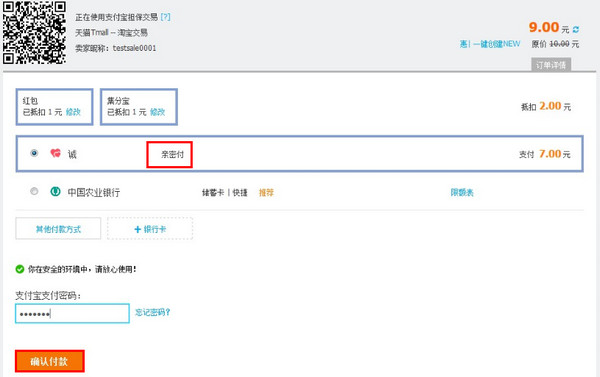电脑上使用亲密付付款的流程 大文 六月 4, 2016 无线支付宝 0 条评论 1295 围观 1 到达收银台,选择【亲密付】,输入支付密码,点击【确认付款】 注: 支持红包、集分宝等优惠工具与亲密付一起组合支付 2 支付成功