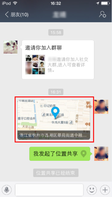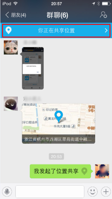 温馨提示:在已共享位置的群内,当退出群会话页面,也会提示是否要结束位置共享,如确认,则共享位置结束