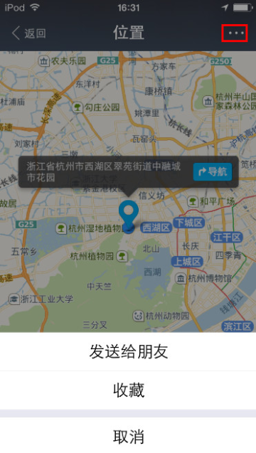 7 点击右上角“…”,可以选择“发送给朋友”或者“收藏”