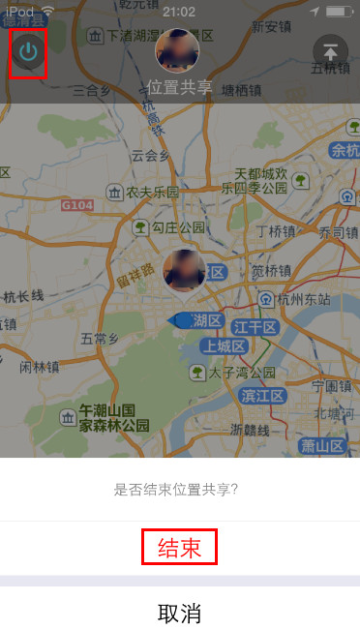 12 点击左上角图标,出现”结束“位置共享的提示,点击【结束】即可结束掉共享位置。