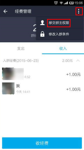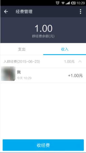 8 可以查看经费收支情况 注:群主可以发起收经费和对支出的经费进行备注,成员仅可查看