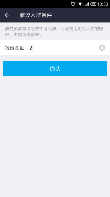 13 输入经费金额,点击【确认】,完成入群金额修改