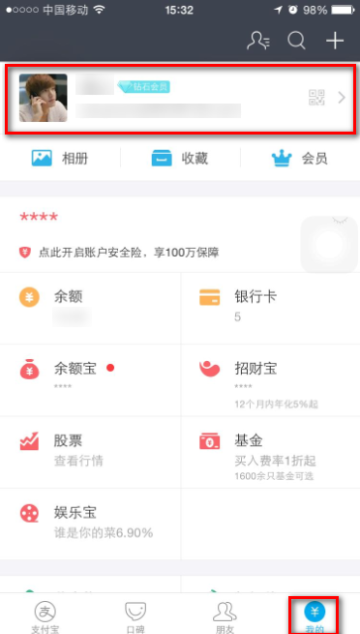 1 手机登录支付宝, 点击【我的】—【账户信息栏】
